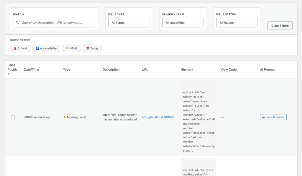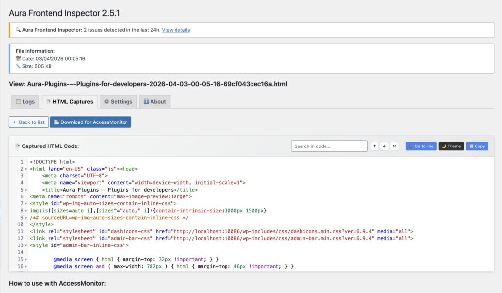 Detect frontend HTML and accessibility issues directly in WordPress.